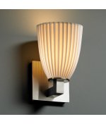 Metal Finish:Matte Black, Shade:Tapered Cylinder, Impression Pattern:Leaves, Light Bulb:(1)75w T4 Mini Can 120v Halogen Modular halogen 1 light wall sconce The Limoges Collection offers translucent porcelain lighting with a contemporary flair. Classic in design, these exquisite fixtures are notable for the delicate 'impressions' embossed into fine porcelain shades. Uplight only..../ Justice Design Group POR-8821-18-LEAF-MBLK Limoges Modular / Home Group