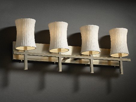 Limoges 4 Light Bathroom Fixture with Hourglass Porcelain ShadeSuitable for Damp LocationsChoose from 7 Unique Shade Designs and 4 finishesExtends: 7", with 8-1/4" Mounting Center4 100w max Medium base Type A-19 (Bulbs Not Included, Use White Frosted Only).../ Justice Design Group POR-8964-CHKR Checkerboard Hourglass Limoges Traditional / Classic 4 Light 37" / Home Group